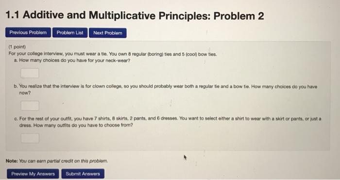 Solved 1 1 Additive And Multiplicative Principles Problem 2 Chegg Com